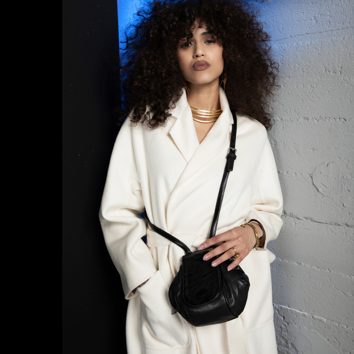 With its soft shape and clean cut, it is perfect for both day and evening use.