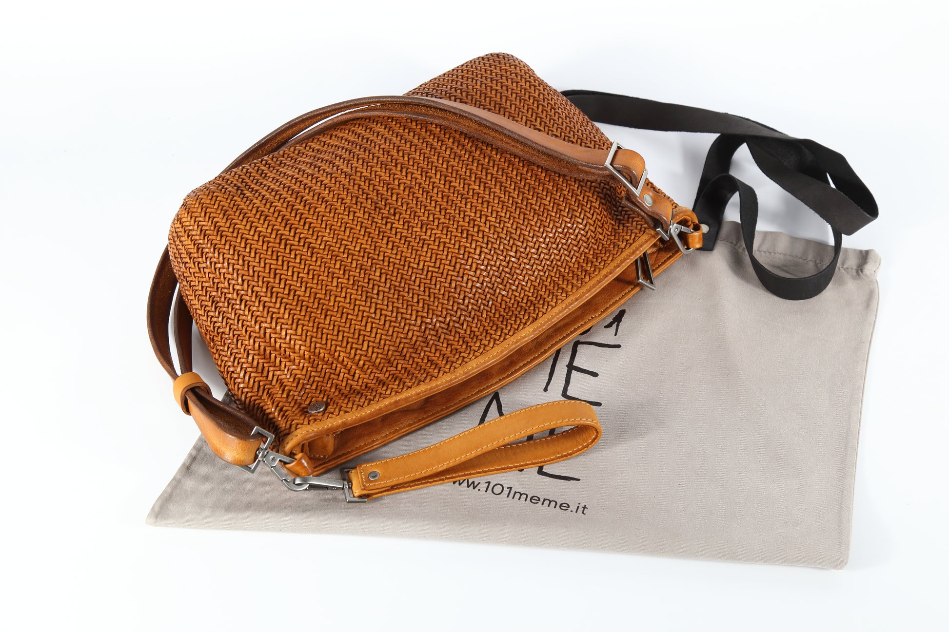 To best preserve your 101MEME accessory, store it in a dry place away from sunlight. Clean with a damp cloth, then, when the bag is dry, polish with a wool cloth. Avoid using detergents.