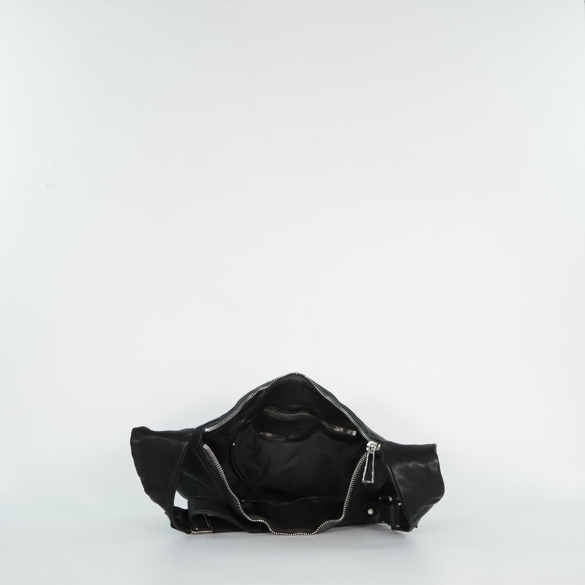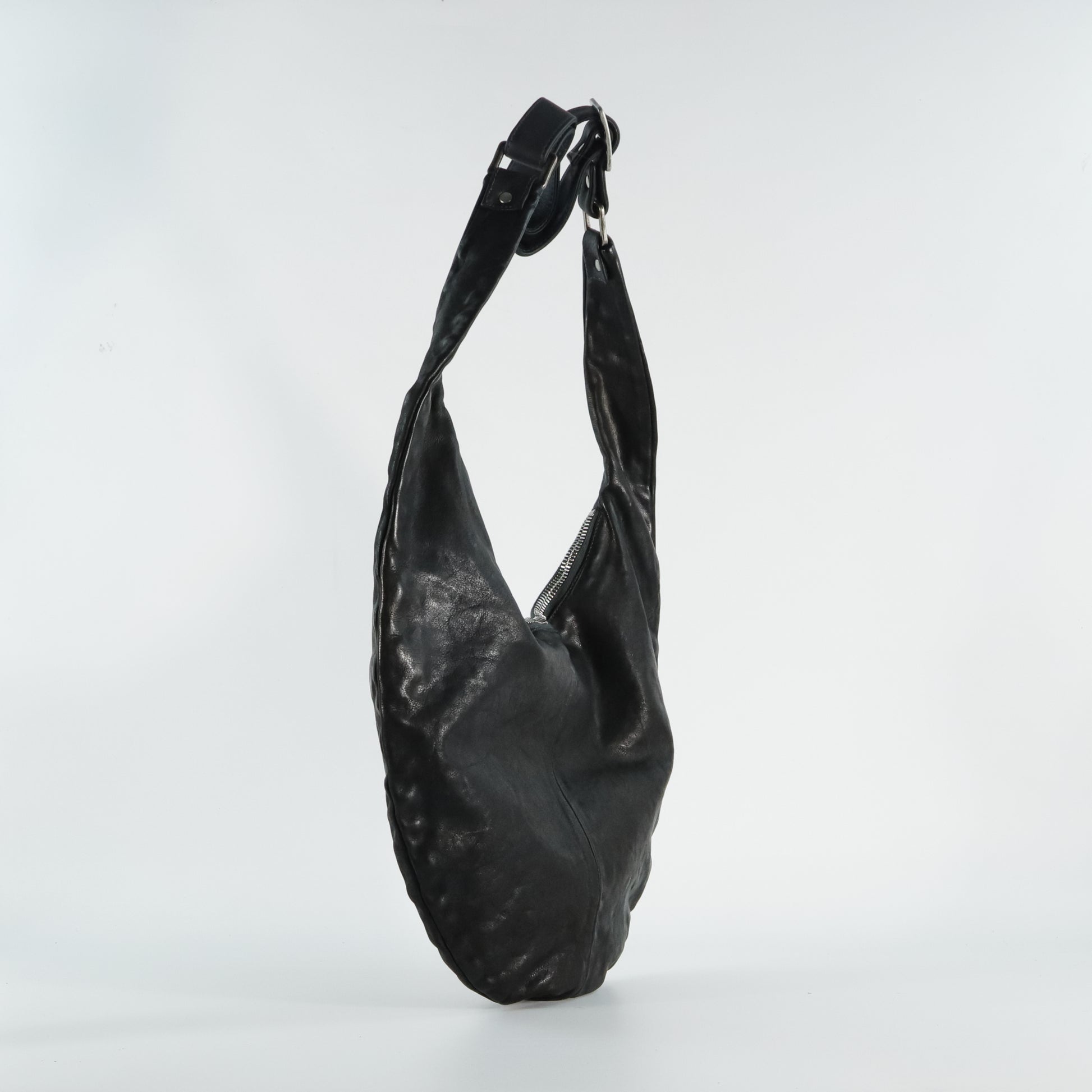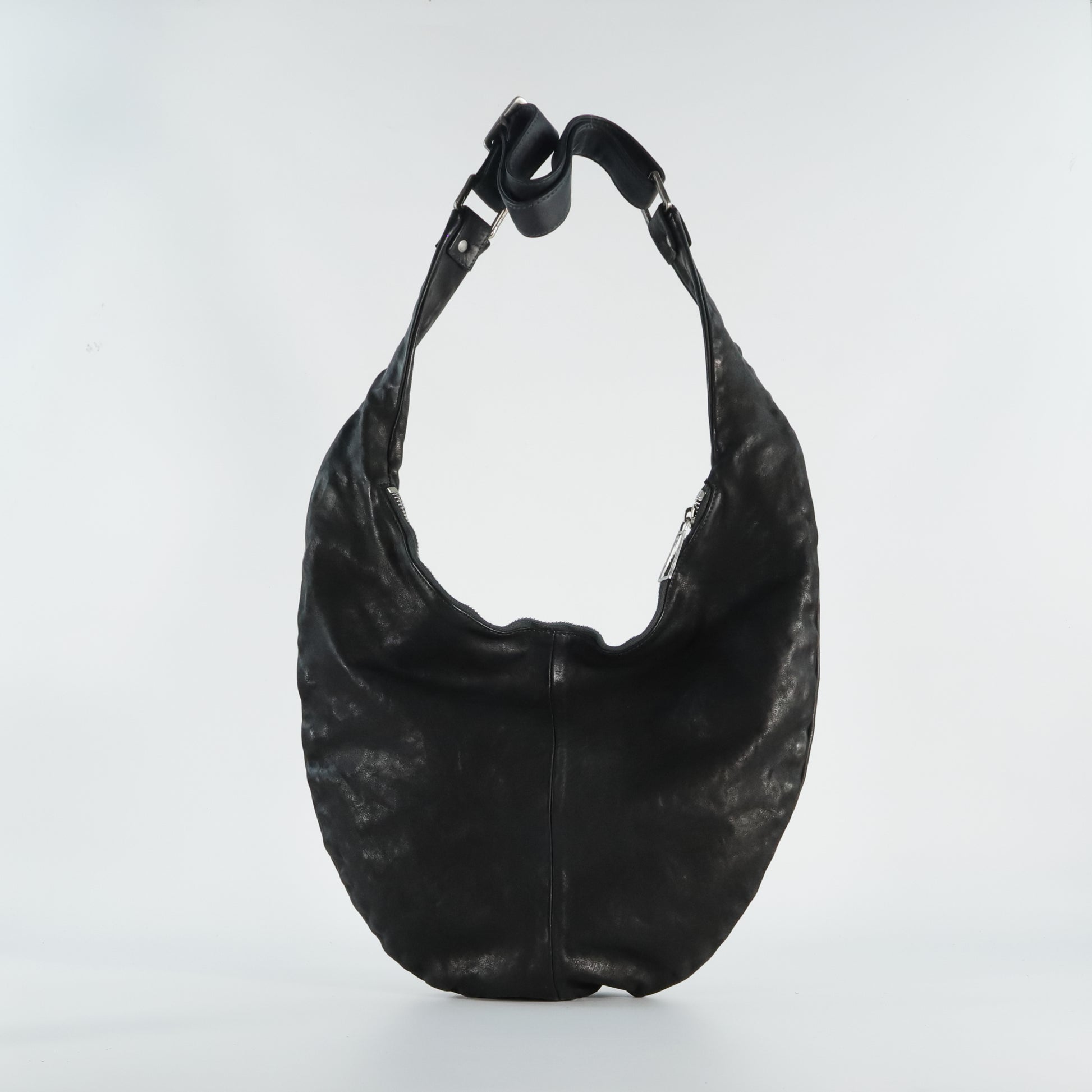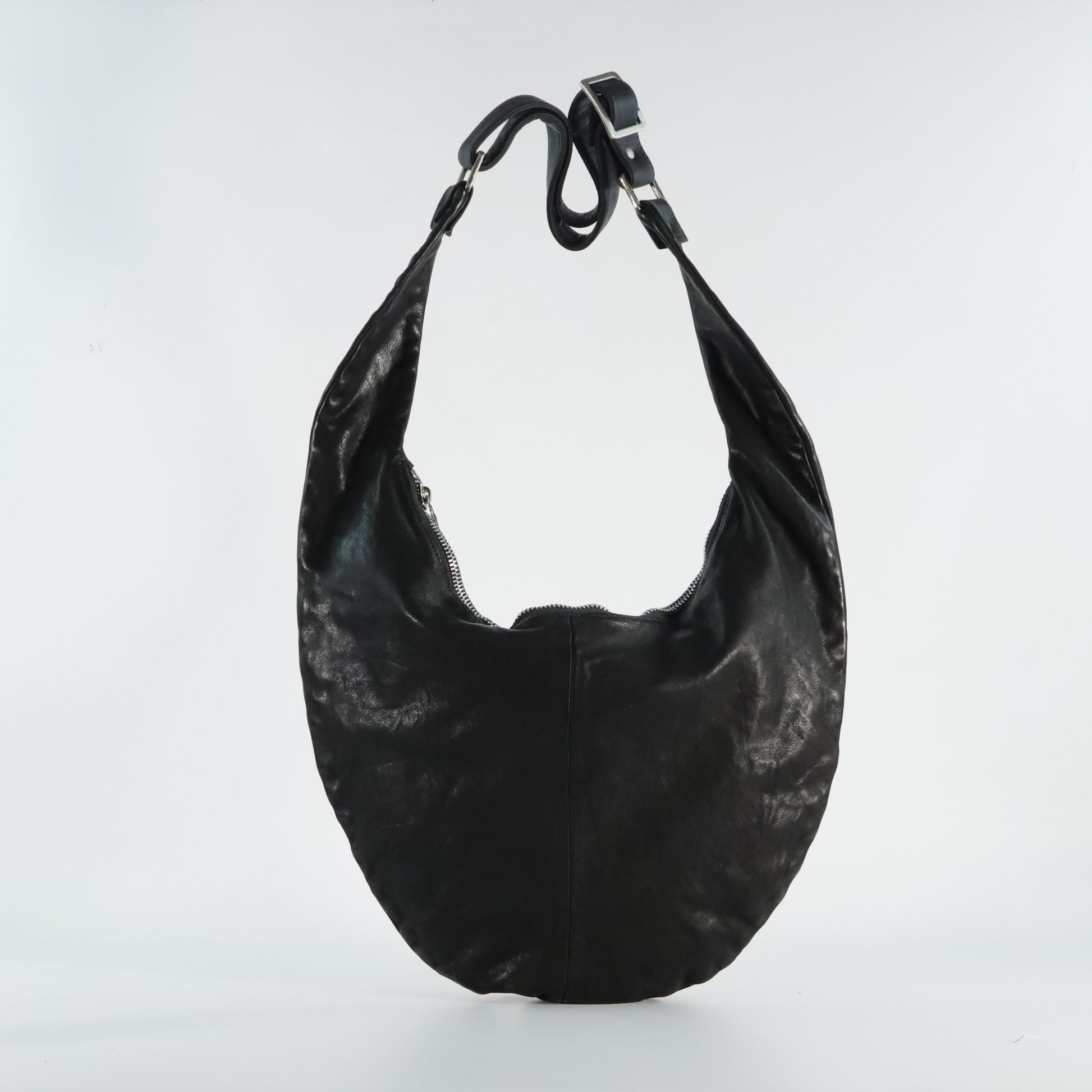Shoulder bag with a soft, rounded design. Features an adjustable handle, zip closure, and fabric-lined interior with pockets. Essential yet full of character, it combines comfort and contemporary style.