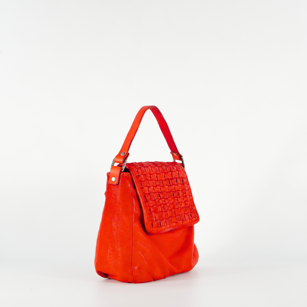 Rada Tube stands out for its new tubular weave, stitched and turned inside out. The opening features a magnetic button closure, while the back has a practical zip pocket. Medium in size, versatile and comfortable, it comes with an adjustable and removable strap, making it wearable by hand, on the shoulder, or crossbody.