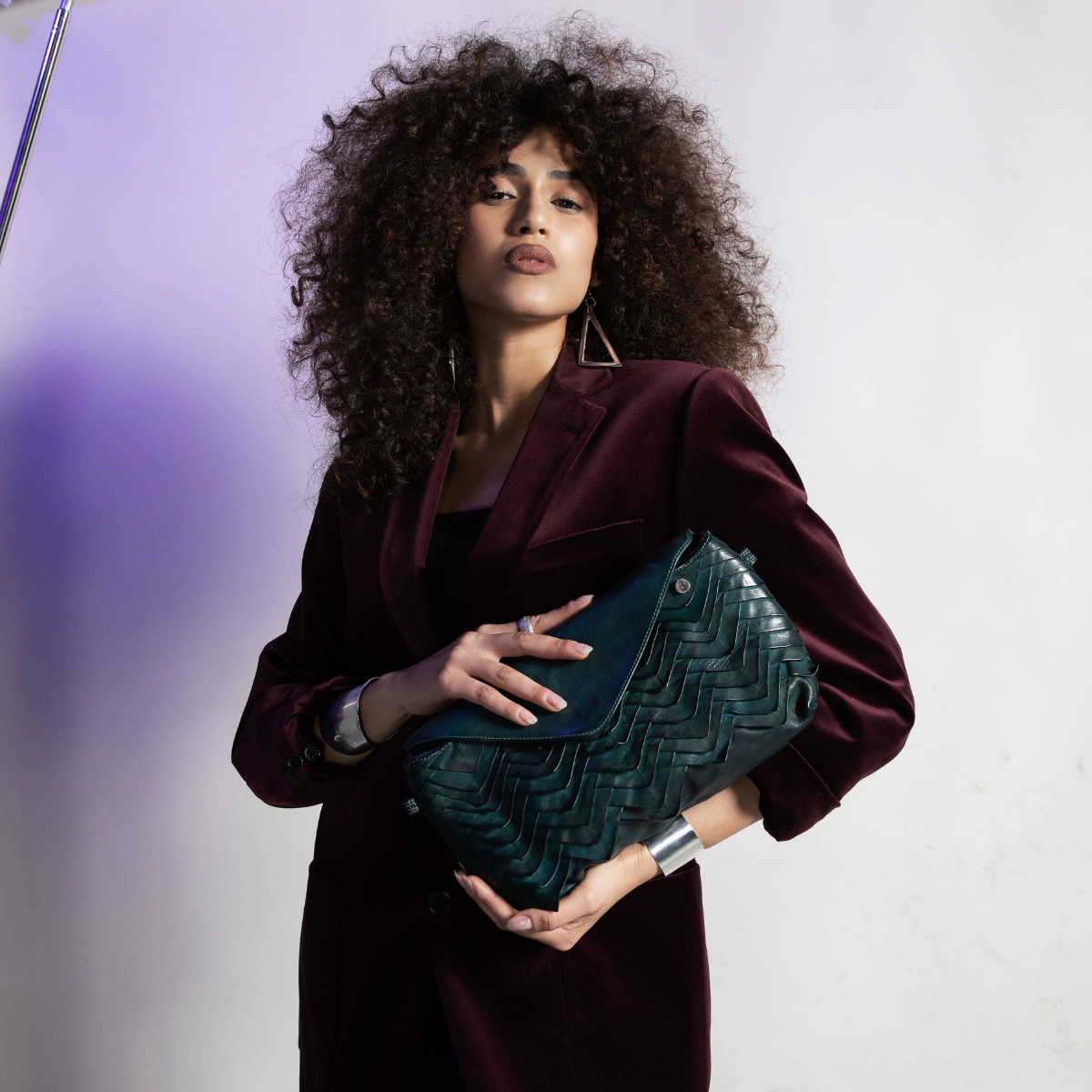 The bags of the MANIS line are small artisanal masterpieces, made with a meticulous work of sewing overlapping leather triangles. Vivienne Manis, compact and versatile, combines style and practicality. It can be worn cross body or as a clutch, and expresses the uniqueness of 101MEME.