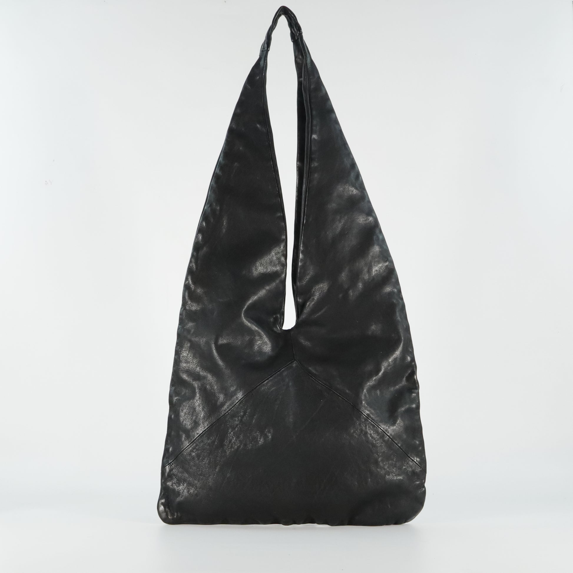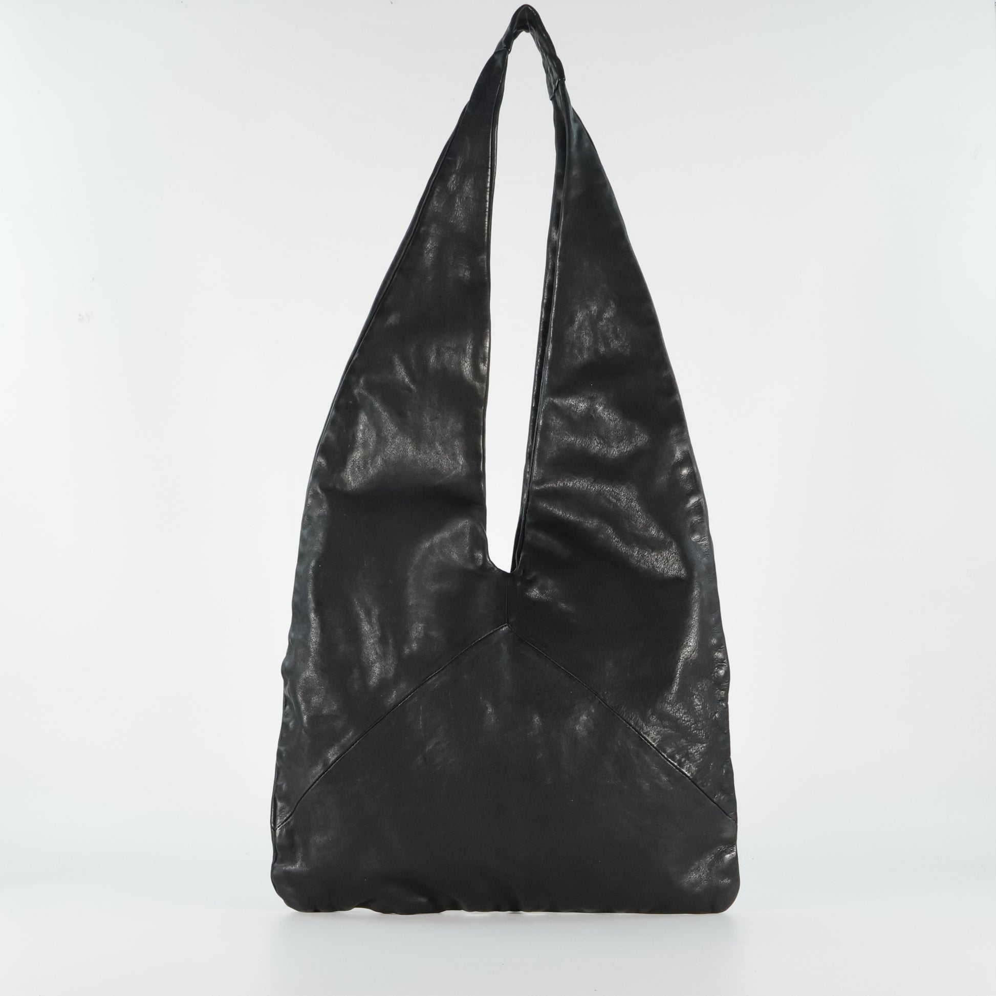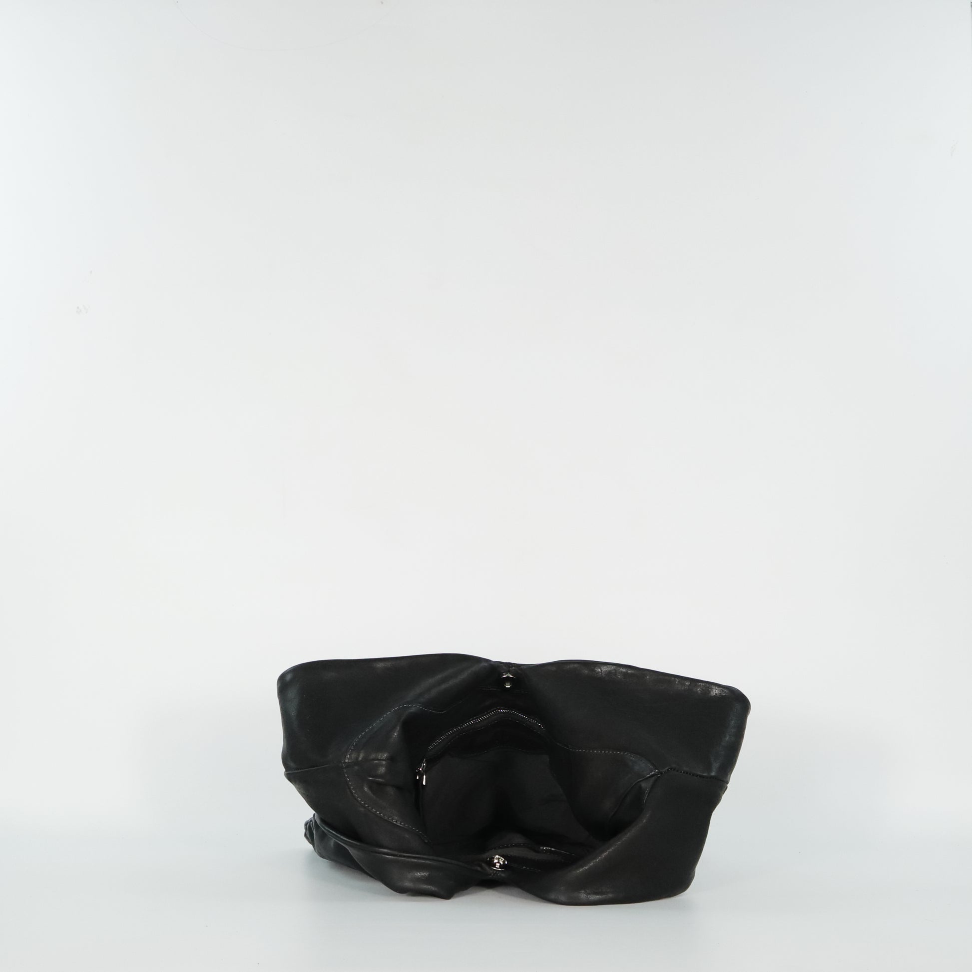 Borsa hobo morbida in pelle nera, dal taglio minimal e silhouette slouchy con tracolla singola, comoda per portarla a spalla. Interno capiente con tasca con cerniera per gli oggetti essenziali. Essenziale ma di carattere, unisce comfort e stile contemporaneo.