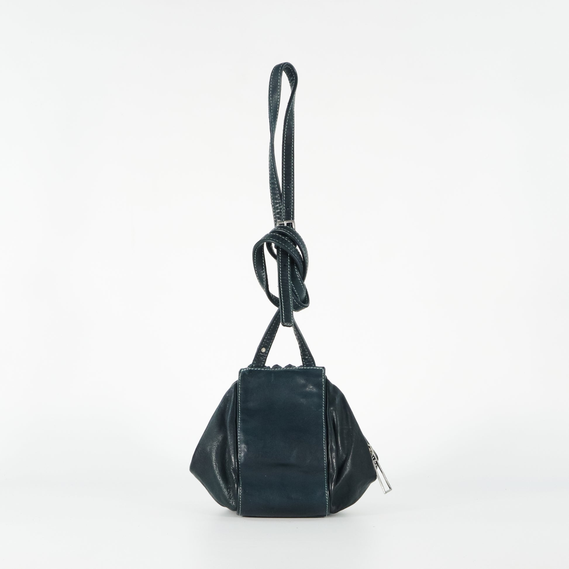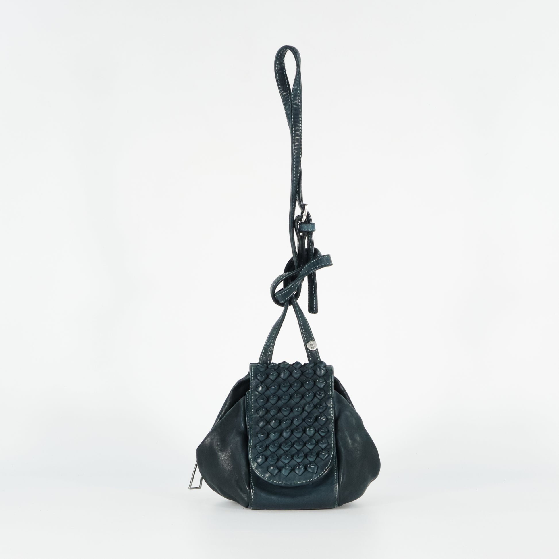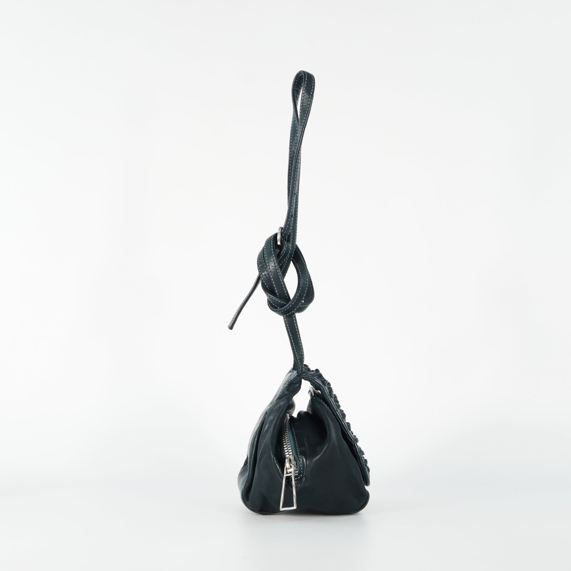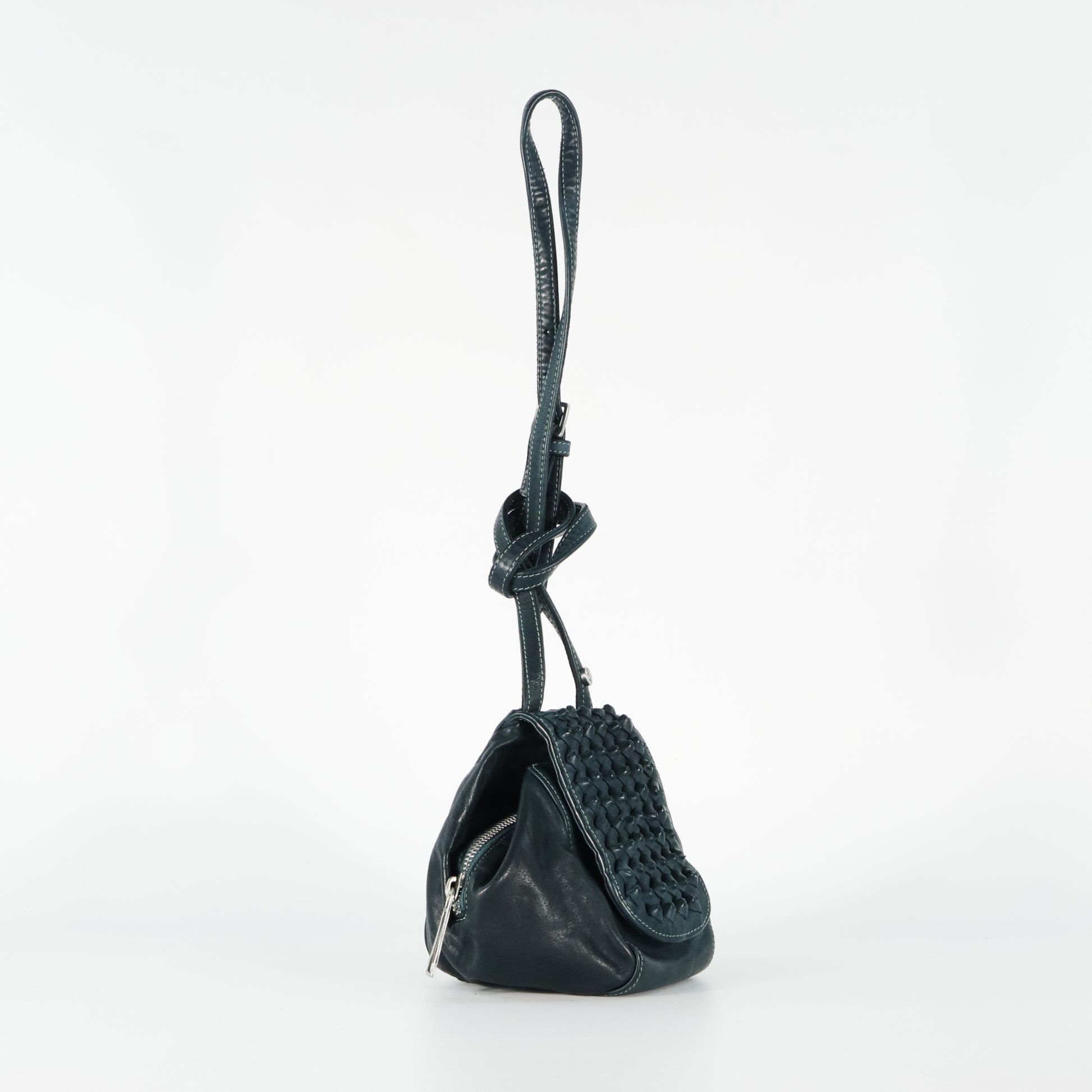 Il motivo a nodi, realizzato a mano con impunture sartoriali, dona alla borsa un carattere unico e dinamico.