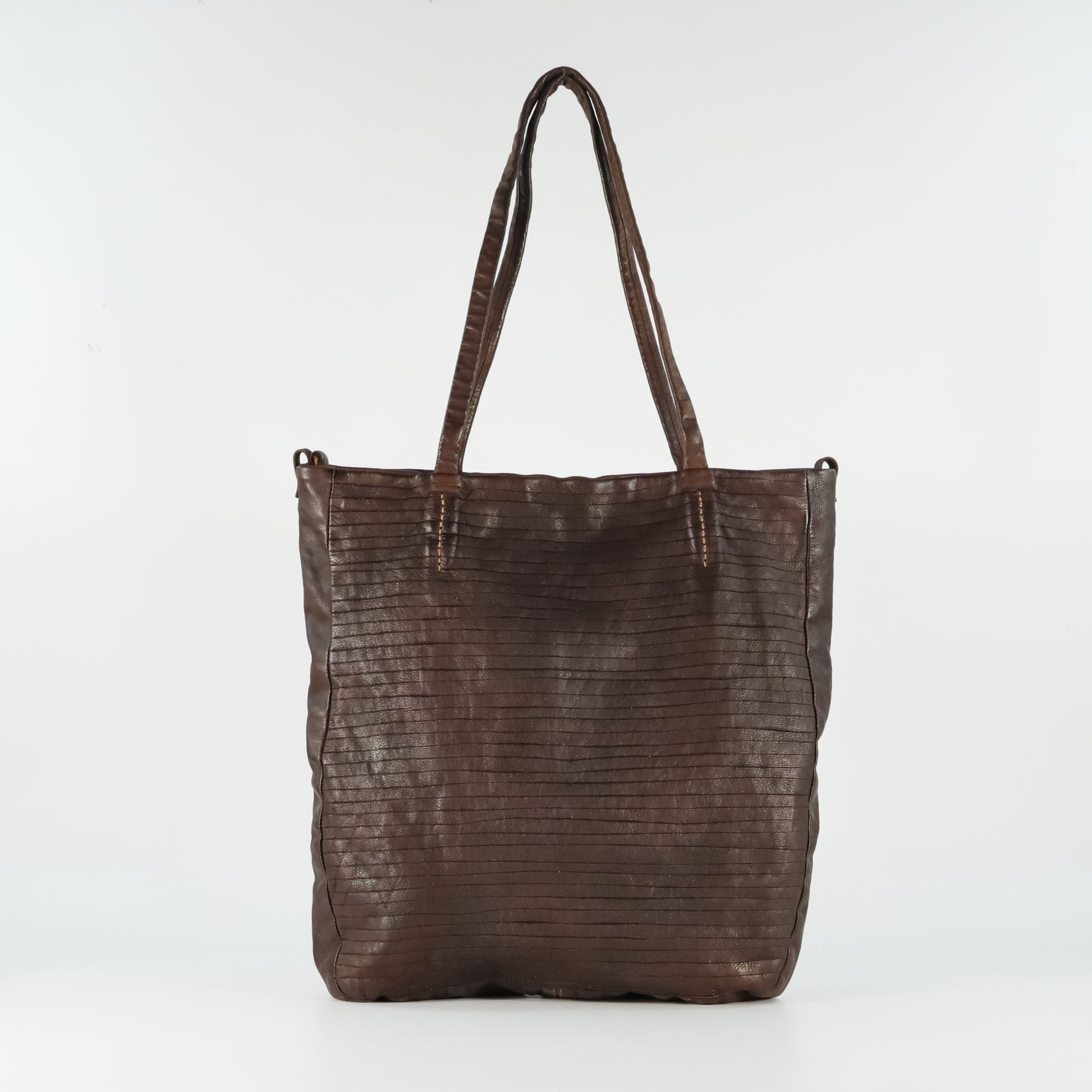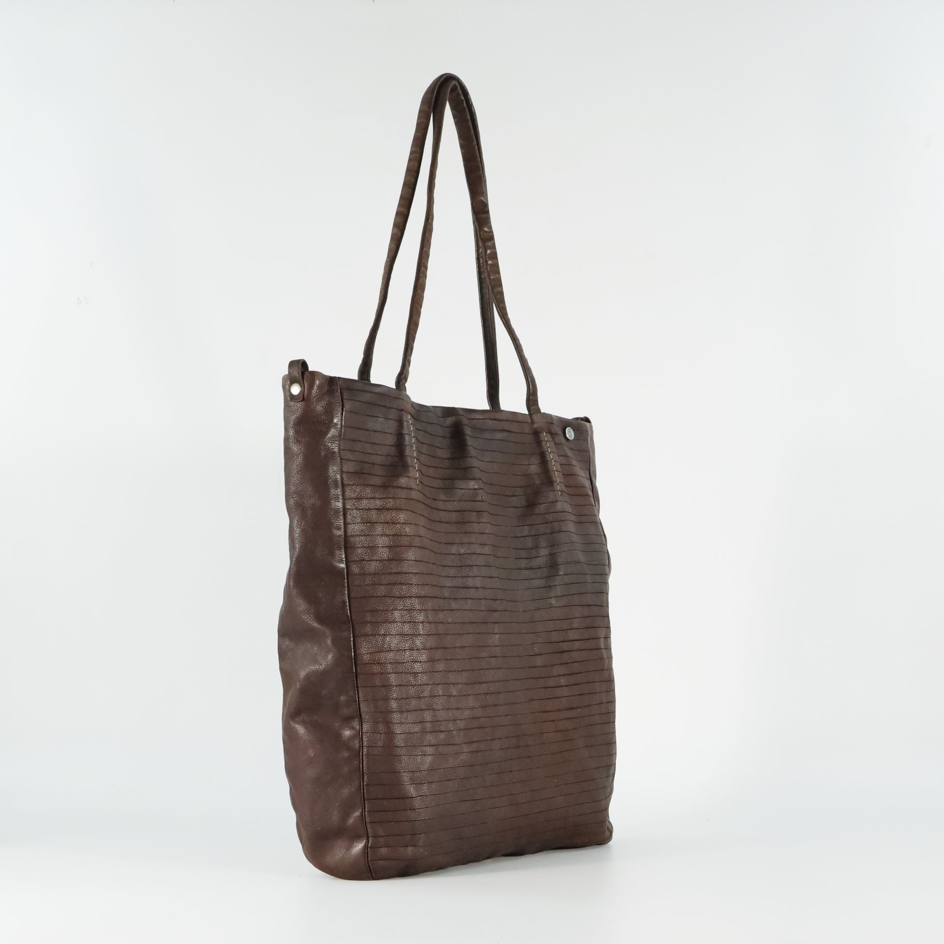 Shopper dal design moderno e lineare. Caratterizzata dall'intaglio a righe orizzontali, è ampia e morbida, con manici lunghi per portarla a spalla e tracolla regolabile e removibile per la massima versatilità. Perfetta per un utilizzo quotidiano elegante e funzionale.