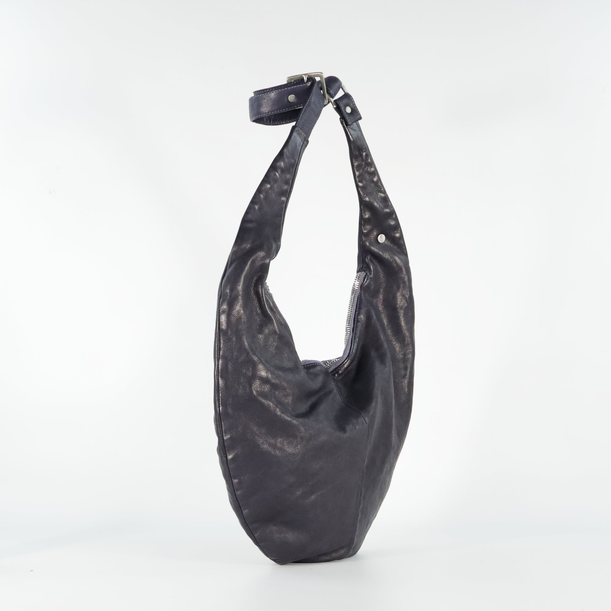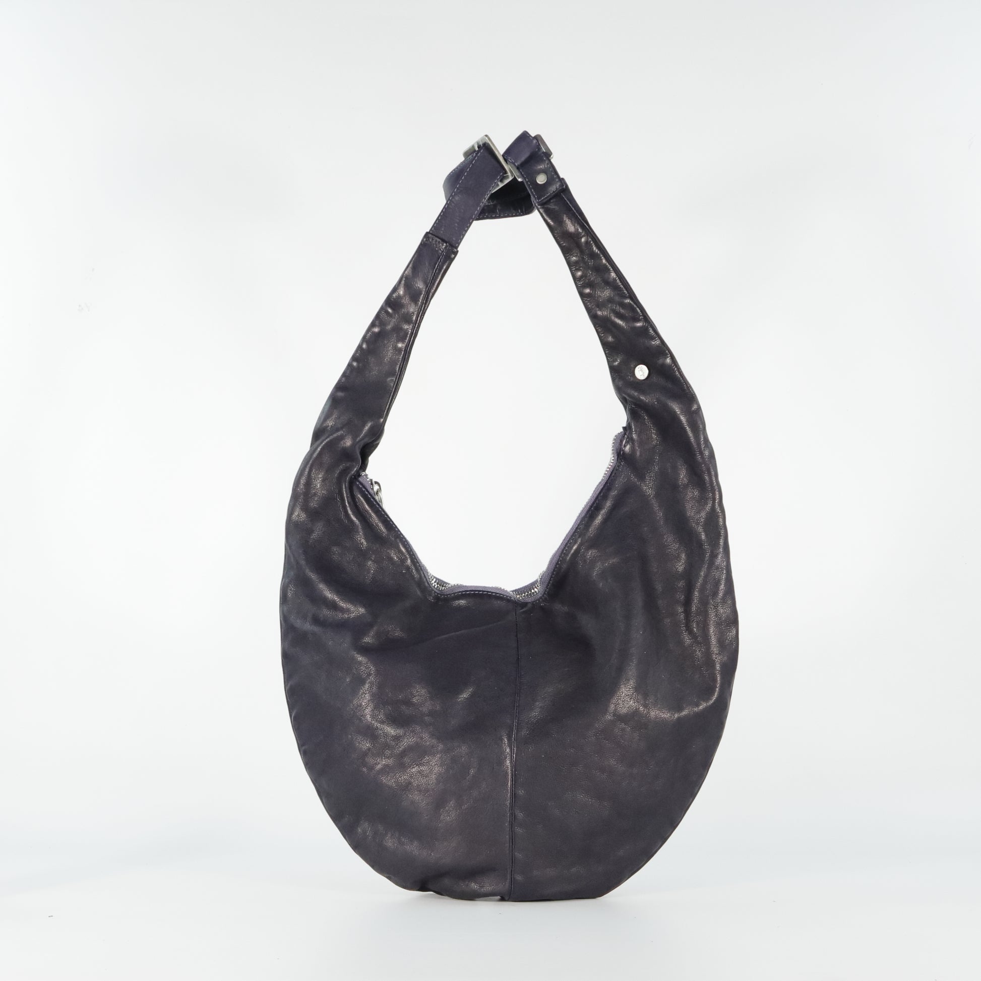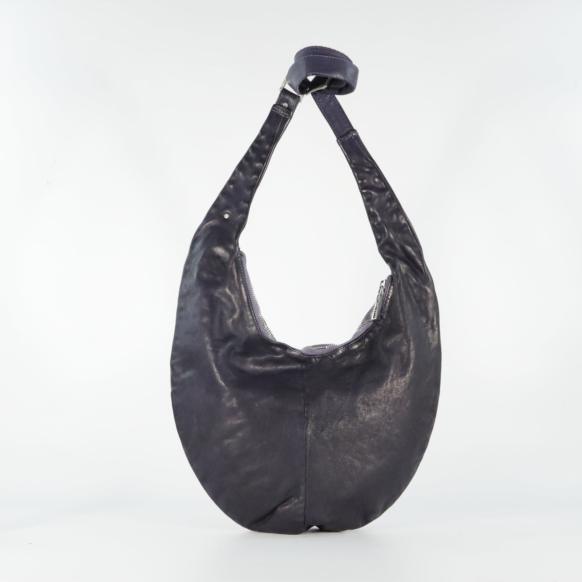 Borsa a spalla dal design morbido e arrotondato. Dotata di manico regolabile, chiusura con zip e interno foderato con tasche. Essenziale ma di carattere, unisce comfort e stile contemporaneo.